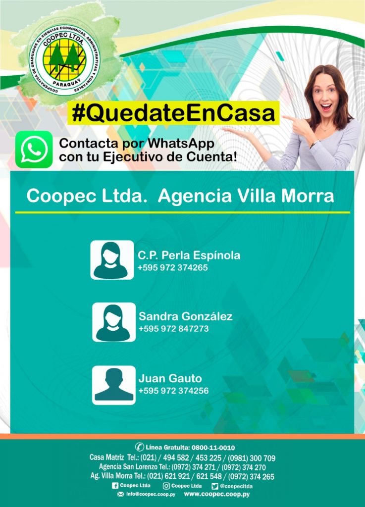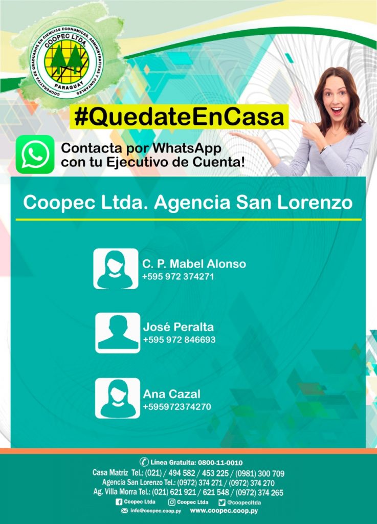 Teniendo en cuenta las medidas complementarias dictadas por el Estado respecto a la prevención de propagación del coronavirus, te informamos que podes contactarnos desde tu casa por cualquiera de los siguientes medios: