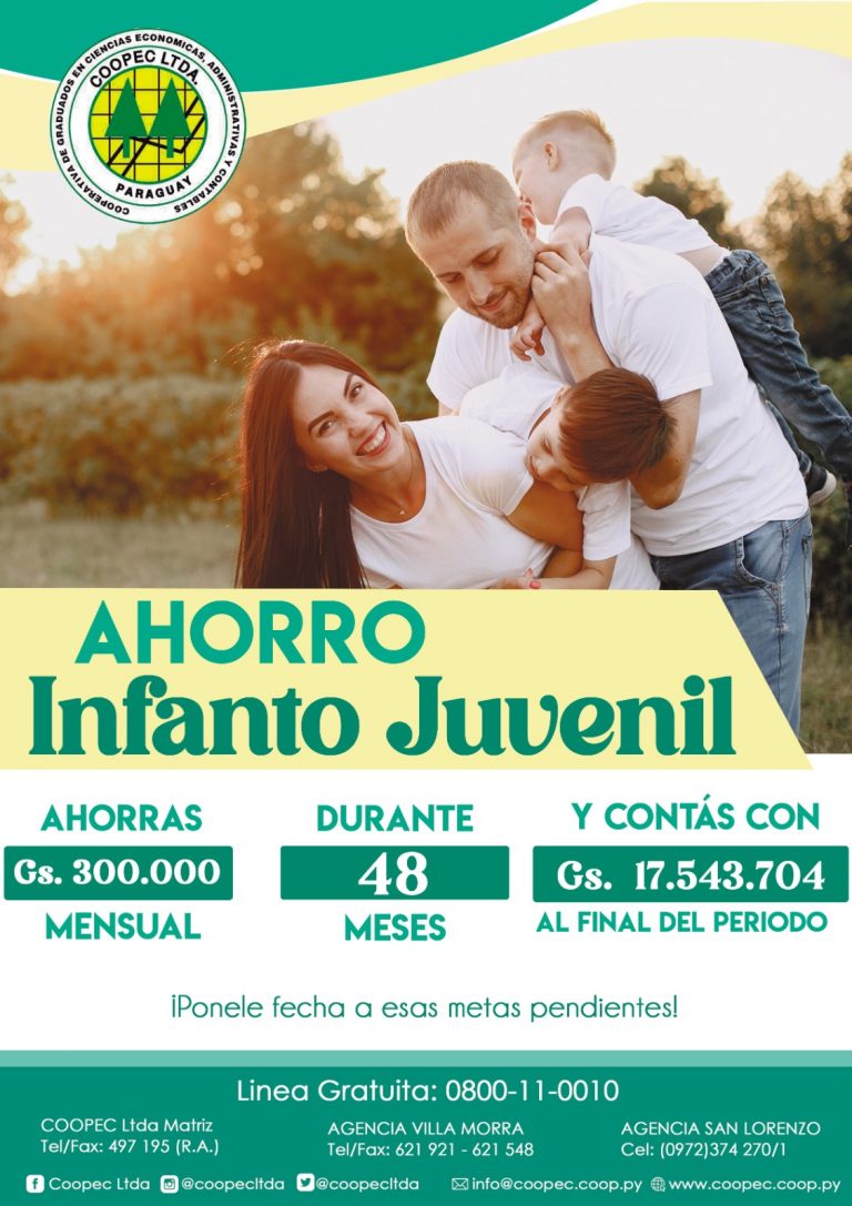 - El plazo mínimo para el sistema de Ahorro Plazo Fijo Infantil es de dos años y plazo máximo de cuatro años.